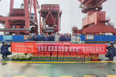 中國電力網(wǎng)訊 清涼度盛夏,安康伴我行。7月28日,安徽大唐電力檢修運營有限公司工會負(fù)責(zé)人赴當(dāng)涂碼頭項目部開展“送清涼 戰(zhàn)高溫 保安全”慰問活動,為奮戰(zhàn)在高溫一線的項目部員工送去防暑降溫物品,傳遞組織的關(guān)心關(guān)愛。