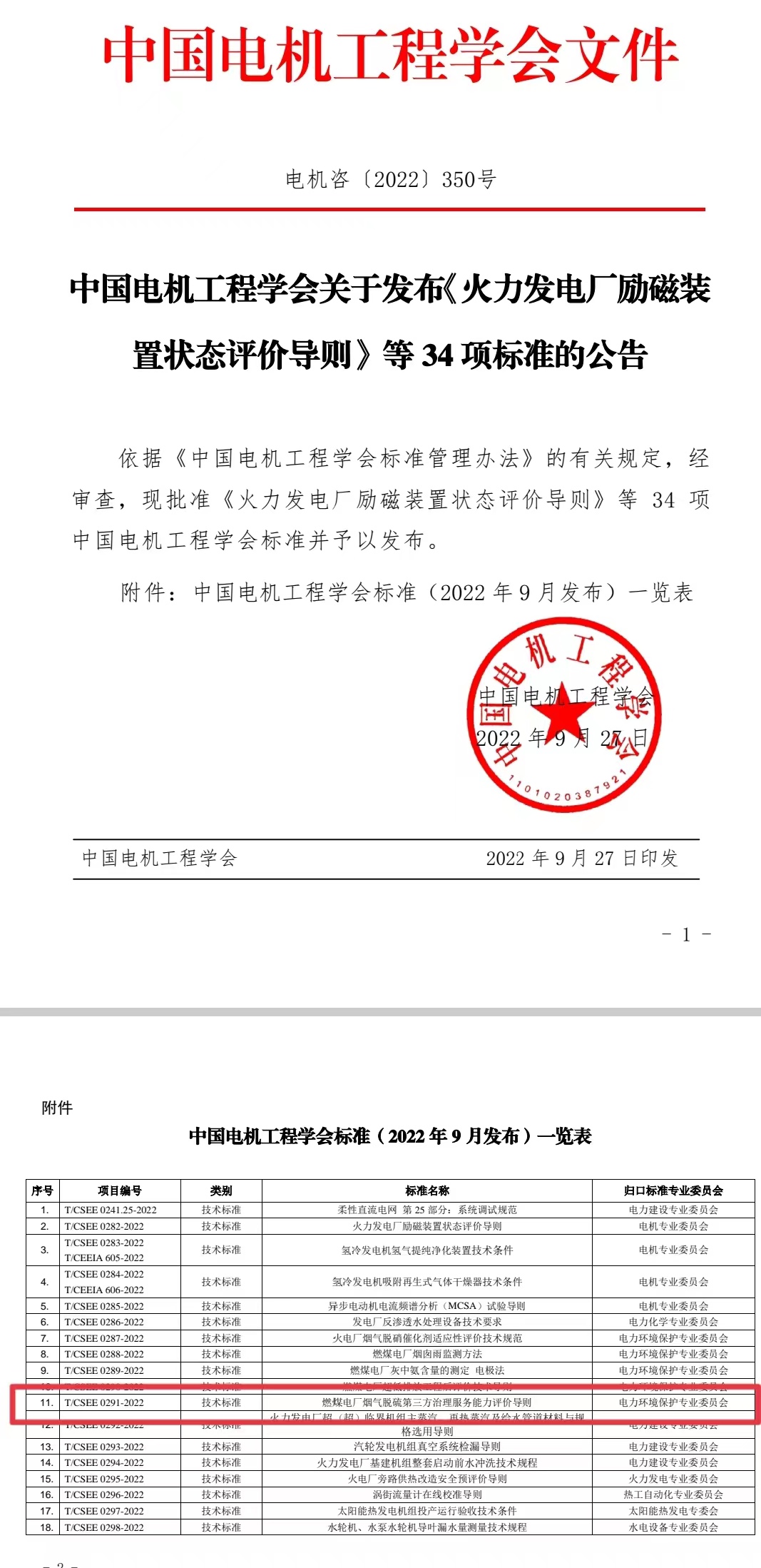 中國電力網(wǎng)訊 9月29日,由大唐環(huán)境特許經(jīng)營分公司編制的《燃煤電廠煙氣脫硫第三方治理服務(wù)能力評價導(dǎo)則(T/CSEE 0291-2022)》團(tuán)體標(biāo)準(zhǔn)獲得中國電機(jī)工程學(xué)會的批準(zhǔn)發(fā)布。