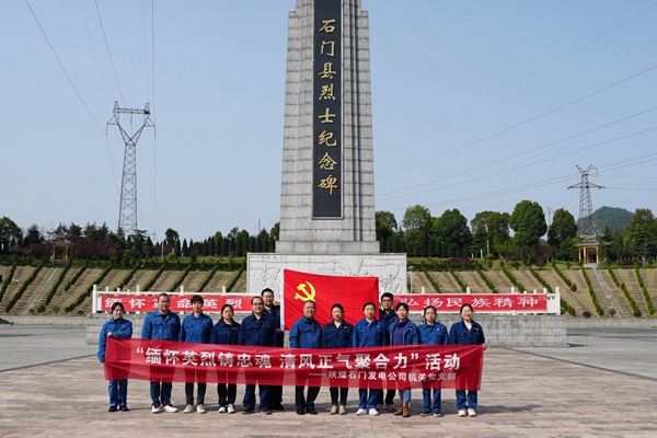 中國電力網(wǎng)訊 (通訊員:盧雅麗)清明時(shí)節(jié)寄哀思,豐碑永駐鑄忠魂。4月1日,陜煤石門發(fā)電公司機(jī)關(guān)黨支部組織全體黨員赴石門縣烈士陵園開展“緬懷英烈鑄忠魂 清風(fēng)正氣聚合力”清明祭英烈活動,引導(dǎo)全體黨員銘記歷史,傳承紅色基因,凝聚奮進(jìn)力量。
