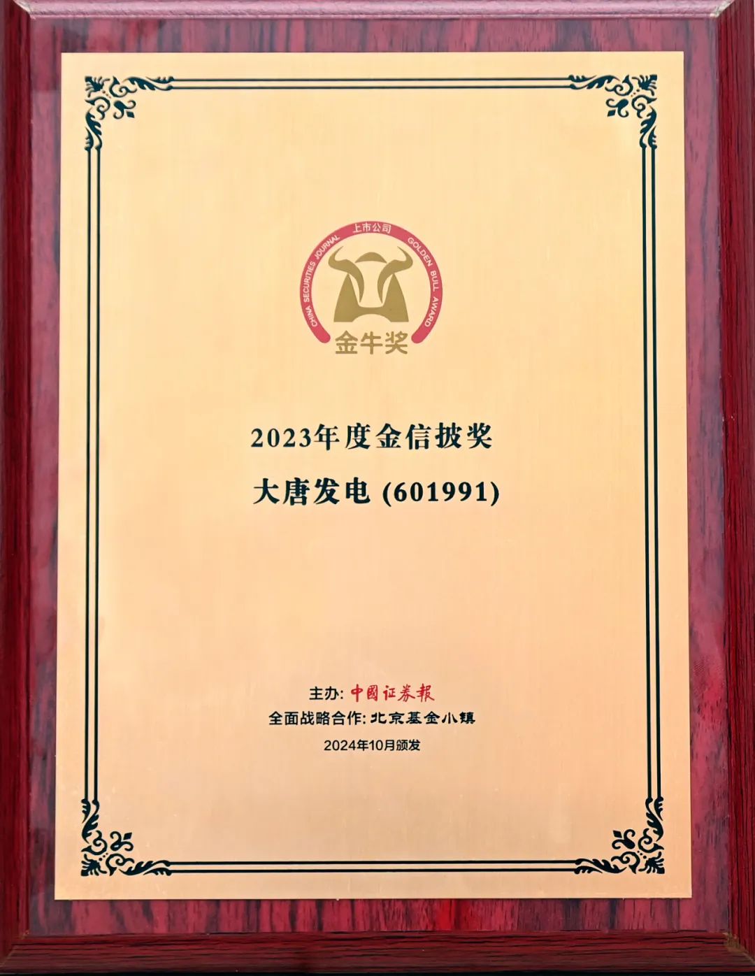 近日,2024上市公司高質(zhì)量發(fā)展論壇暨第二十六屆上市公司金牛獎(jiǎng)?lì)C獎(jiǎng)典禮在江蘇南通舉行。大會(huì)期間,上市公司金牛獎(jiǎng)9個(gè)獎(jiǎng)項(xiàng)獲獎(jiǎng)榜單揭曉。大唐發(fā)電憑借在公司治理、信息披露、投資者關(guān)系等方面工作的優(yōu)異表現(xiàn),榮獲2023年度上市公司金牛獎(jiǎng)“金信披獎(jiǎng)”。