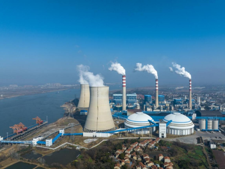 遠(yuǎn)眺湖北能源鄂州電廠,火電機(jī)組正在全力保供
