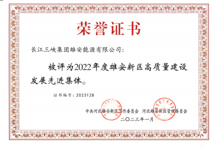 2022年,三峽雄安公司全體黨員干部職工牢記“國之大者”,主動服務(wù)國家戰(zhàn)略,全面融入雄安新區(qū)建設(shè),工作取得了突破性進(jìn)展:2022年6月成為唯一一家和新區(qū)三縣簽訂戰(zhàn)略協(xié)議的中央企業(yè),謀劃“清潔能源+生態(tài)環(huán)保+鄉(xiāng)村振興”開發(fā)模式,在三縣均有生態(tài)環(huán)保、清潔能源項目落地,積極展現(xiàn)三峽集團講政治、強擔(dān)當(dāng)良好形象,獲得國務(wù)院國資委官方媒體報道并受到新區(qū)管委會高度肯定。