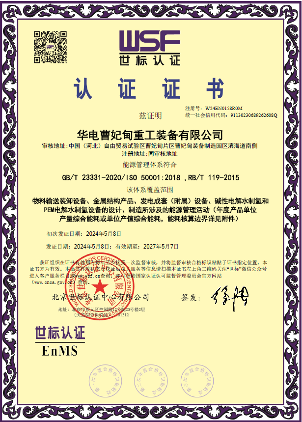 曹妃甸重工從基礎(chǔ)設(shè)施的環(huán)保升級、管理體系的綠色轉(zhuǎn)型、能源資源的高效利用、產(chǎn)品設(shè)計的綠色創(chuàng)新以及環(huán)境排放的嚴格管控等多個維度入手,對生產(chǎn)運營進行了全面梳理和優(yōu)化,并首次獲得“能源管理體系認證”證書,為順利通過省級“綠色工廠”認定提供了有力支持。在技術(shù)創(chuàng)新方面,曹妃甸重工致力于開發(fā)氫能電解槽等前沿能源項目,進一步推動能源結(jié)構(gòu)的優(yōu)化工作。