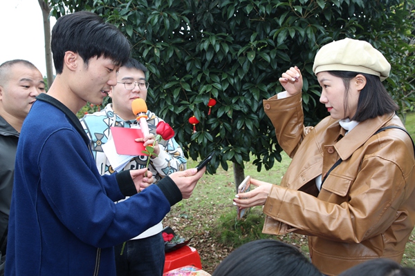 青年聯(lián)誼活動(dòng)在熱情洋溢的氛圍中拉開了序幕?;顒?dòng)內(nèi)容包括自我介紹、才藝展示、有獎(jiǎng)?chuàng)尨?、現(xiàn)場分組、游戲環(huán)節(jié)和玫瑰結(jié)緣牽手等。幾輪有獎(jiǎng)競答,預(yù)熱了活動(dòng)現(xiàn)場。隨后,各單位隊(duì)長開始挑選隊(duì)員,進(jìn)行分組,分成了紅、藍(lán)、橙、紫4組。在主持人的帶動(dòng)下,每組以競賽的方式完成“你演我猜”和“雙龍戲珠”等一系列豐富多彩的游戲環(huán)節(jié),青年男女之間進(jìn)行了一次次的互動(dòng)交流和團(tuán)隊(duì)協(xié)作,緩解了初次見面的緊張羞澀,也讓大家在歡聲笑語中,拉近距離、加深了解,將現(xiàn)場氣氛推向了一個(gè)又一個(gè)高潮。