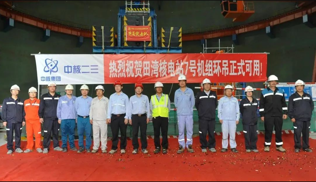 上午9時(shí)30分,田灣核電站7號(hào)機(jī)組360/60t環(huán)吊載荷試驗(yàn)順利結(jié)束,各項(xiàng)指標(biāo)滿足要求。龐躍武宣布田灣核電站7號(hào)機(jī)組環(huán)吊正式可用。其間,江蘇核電、中核工程、中核咨詢、中核二三代表共同簽署了《田灣核電7號(hào)機(jī)組核島安裝工程開工報(bào)告》,標(biāo)志著田灣核電站7號(hào)機(jī)組核島安裝工程正式開工!
