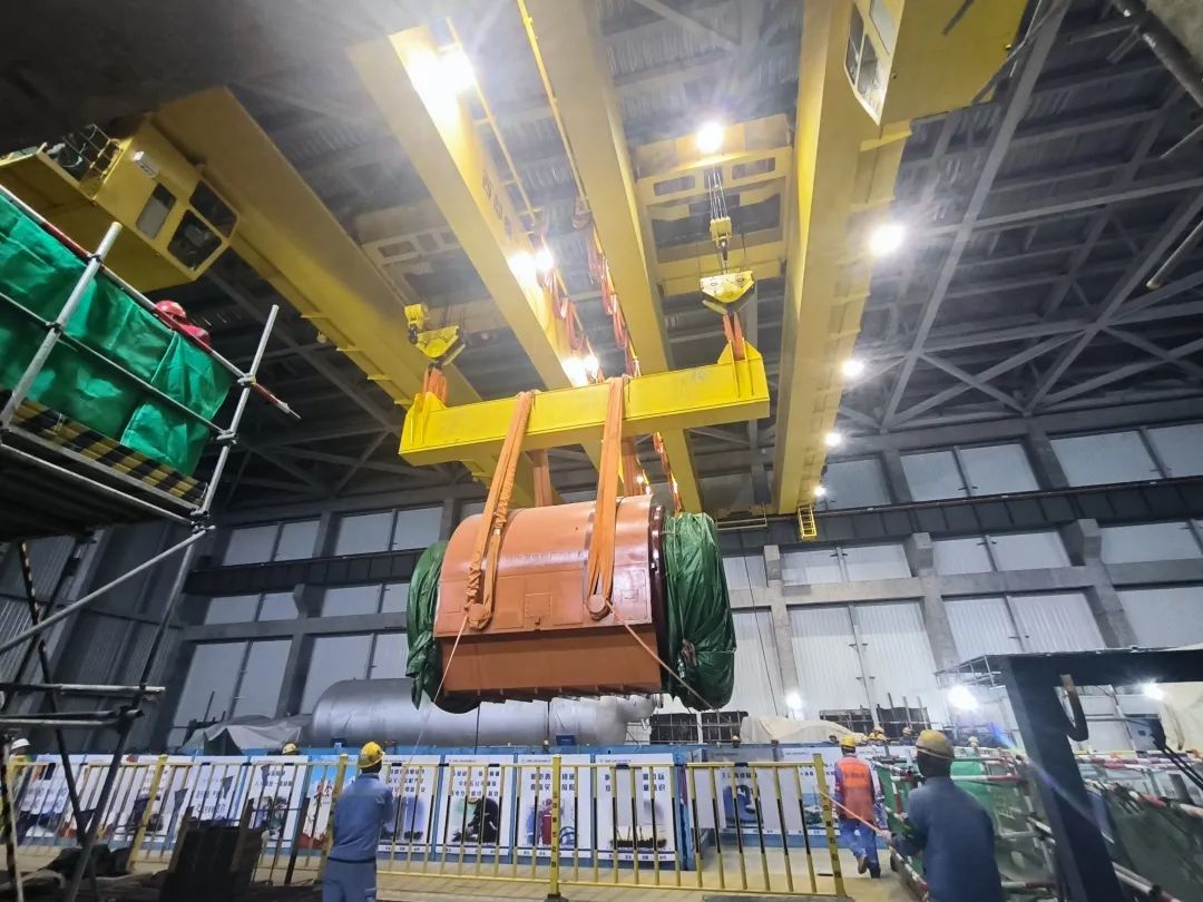 2024年9月14日20時28分,全球首個陸上商用模塊化多用途小型堆施工現(xiàn)場,“玲龍一號”常規(guī)島汽輪發(fā)電機組定子成功落位在發(fā)電機基座上,標(biāo)志著發(fā)電機定子吊裝就位成功,為后續(xù)汽輪發(fā)電機組的安裝打下了堅實的基礎(chǔ)。海南核電在超強臺風(fēng)“摩羯”影響中始終扛起“海南能源壓艙石”責(zé)任,成功抵御超強臺風(fēng),確保核電機組安全穩(wěn)定運行,在建工程在臺風(fēng)過后迅速復(fù)工復(fù)產(chǎn)。