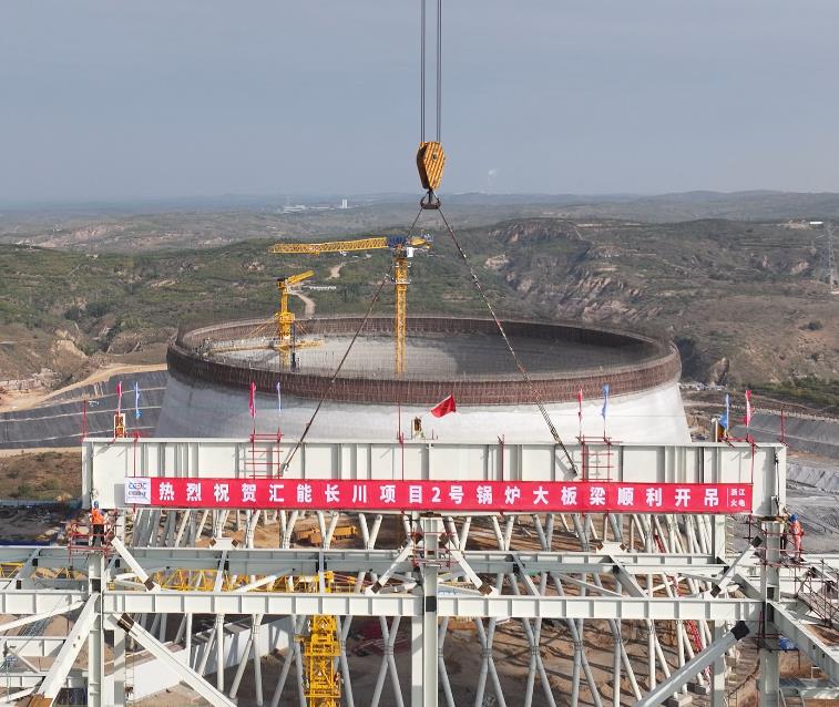 10月5日,中國能建浙江火電承建的內(nèi)蒙古匯能長川項目2號機組鍋爐大板梁吊裝就位。