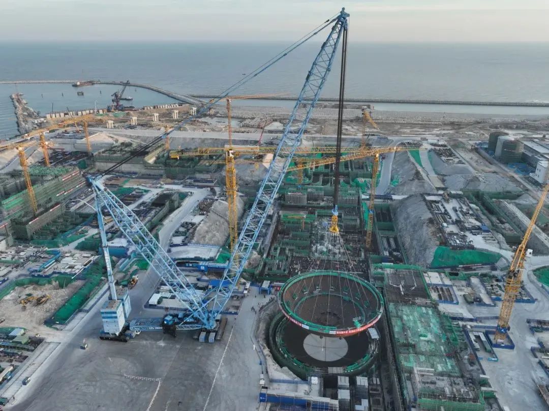 徐大堡核電2號(hào)機(jī)組反應(yīng)堆廠房鋼制安全殼底封頭順利吊裝就位