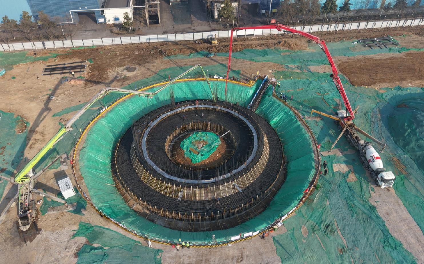 此次7號(hào)鍋爐和煙囪基礎(chǔ)采取不間斷接續(xù)施工方式,自1月17日7時(shí)40分開始,歷經(jīng)4天4夜奮戰(zhàn),先后完成了兩區(qū)域大體積混凝土澆筑任務(wù)。7號(hào)鍋爐筏板長45.9米、寬44.7米,基礎(chǔ)混凝土厚度2.3米,采用2臺(tái)63米汽車泵和1臺(tái)56米汽車泵,澆筑混凝土總量4673方。煙囪基礎(chǔ)為環(huán)板式,外直徑為38米,澆筑采取用二備一泵車配置,總澆筑方量達(dá)2451方。尤為值得一提的是,煙囪基礎(chǔ)自2024年12月26日開挖,于2025年1月20日澆筑完成,僅歷時(shí)25天,打破了該公司煙囪基礎(chǔ)施工的最短工期紀(jì)錄。