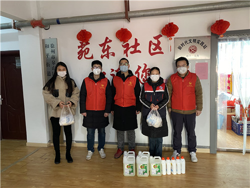 公司有大量員工居住在苑東社區(qū)下轄小區(qū),公司團委了解相關情況后,積極主動聯(lián)系社區(qū)疫情防控人員。了解到社區(qū)目前防疫工作存在物資缺乏,多方聯(lián)系送去急需的消毒液、防護手套支援防疫一線。在苑東社區(qū)辦公室,團委書記史雪理與社區(qū)工作人員進行了交流,感謝他們春節(jié)以來一直堅守在社區(qū)一線為抗擊疫情、保障居民生命健康安全所作的貢獻。