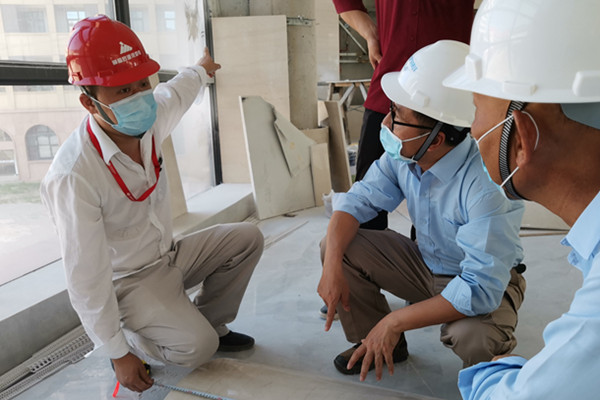 09:00,廠前區(qū)辦公樓正在加緊施工,新到貨石材亟待驗(yàn)收。工程部值班人員會同施工監(jiān)理在廠前區(qū)連接體施工處檢查驗(yàn)收新到貨石材。