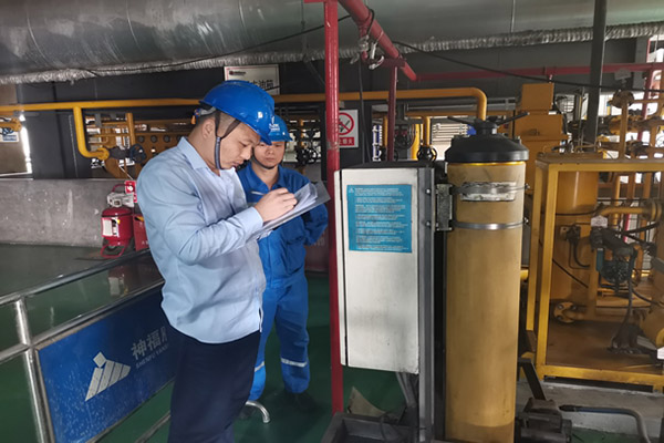 汽機(jī)零米層,該公司檢修部汽機(jī)點(diǎn)檢員正在對(duì)6號(hào)機(jī)組EH油濾油工作進(jìn)行過程監(jiān)督、檢查、簽證,保證油質(zhì)合格。