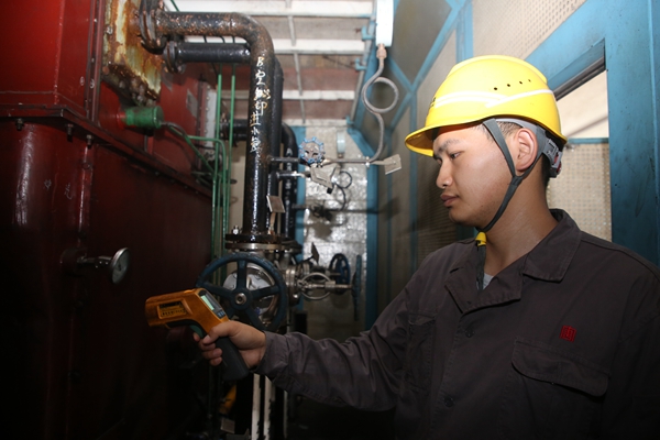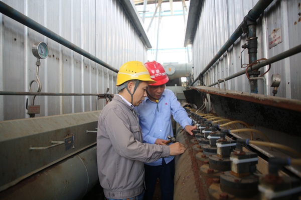 除塵布袋是袋式除塵器的心臟,布袋噴吹氣包可以吹除布袋上的灰塵,確保除塵系統(tǒng)的有效運行。值班過程中,環(huán)保部運行三班發(fā)現(xiàn)2號爐氣包噴吹電磁閥卡澀漏氣,脫硝專工吳文武和該班班長龍智軍立即趕赴現(xiàn)場,他們通過“望、聞、切”等方式,觀察現(xiàn)場設備運行情況、聽取閥門漏氣情況、用鐵錘敲擊管道等,仔細檢查現(xiàn)場噴吹氣包運行情況,確保布袋壓差正常和除塵系統(tǒng)正常運行。