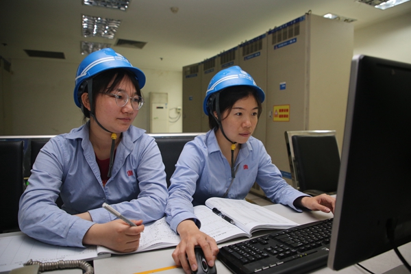 在控制部熱控工程師站,剛完成1號機組檢修任務的熱控人員,眼下現(xiàn)場檢修任務稍減,但他們對于機組正常運行的維護熱情沒有絲毫減少。控制部熱控一班陳潔和熱控二班楊丹在查看機組運行的各項參數(shù),并做好設備巡視數(shù)據(jù)記錄,為機組迎峰度夏安全穩(wěn)定運行打下堅實的設備基礎。
