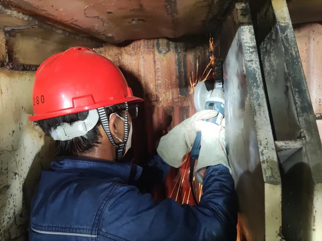 迎峰度夏期間,陜投集團(tuán)趙石畔煤電檢修人員采取各種措施保證設(shè)備健康穩(wěn)定運(yùn)行,加強(qiáng)對主、輔機(jī)設(shè)備的運(yùn)行調(diào)整、檢修維護(hù),對重點(diǎn)防汛地段、部位進(jìn)行專項(xiàng)檢查。特別是出現(xiàn)緊急情況下的搶修工作,往往是輪番上陣,人歇工作不停。圖中,點(diǎn)檢郭生磊在鍋爐房消除設(shè)備膨脹受限缺陷,他手持角磨機(jī)一干就是半個多小時,面對噪音、高溫、火星飛濺等因素他堅(jiān)持作業(yè)。當(dāng)缺陷消除時,他的衣服早已濕透,但臉上卻露出了笑容。(李磊)