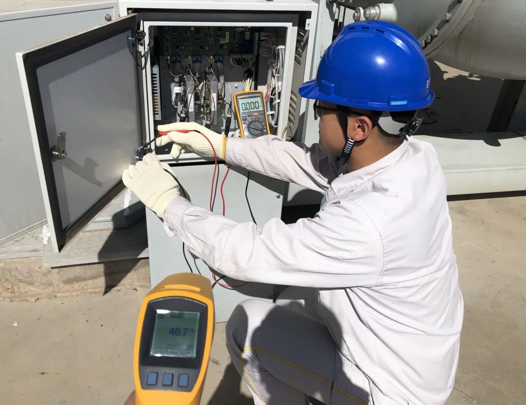 你的每一次低頭檢查,你的每一次仰頭觀察,都是這個夏天最美的風(fēng)景。迎峰度夏,陜投集團(tuán)趙石畔煤電設(shè)備部電氣自動化中心人員在檢查室外端子箱、設(shè)備工作環(huán)境、設(shè)備工作狀態(tài)、溫度是否合適、是否受潮情況、防風(fēng)防雨措施是否到位等。(陶鳳娟)