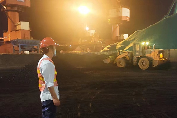 在廈門港口,工作人員正在緊張有序地指揮煤炭裝車,以最快的速度從港口發(fā)車。