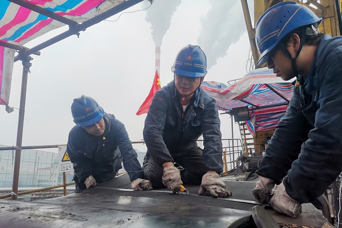 早春的風,帶著絲絲寒意,伴隨著細細春雨,讓人倍感寒冷,但在最短的時間內(nèi)完成搶修任務的強烈責任感,讓現(xiàn)場每一個燃運檢修人員忘卻了寒冷。斗輪機懸臂皮帶定位、新皮帶轉運、硫化機設備吊裝……每一項工作都是耗費體力的“大工程”。為了搶抓時間,在三天的搶修工作中,燃運檢修人員在崗位上就餐,中午和晚上也顧不上休息,加班加點投入到搶修攻堅戰(zhàn)中,不敢有絲毫懈怠。
