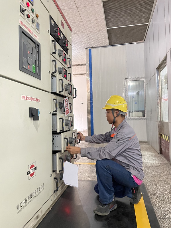 龔鑫(檢修團(tuán)支部書(shū)記):我現(xiàn)在正和青年黨員劉俊在一期脫硫區(qū)域?qū)?A粉倉(cāng)漿液循環(huán)泵變頻器進(jìn)行主板更換和參數(shù)調(diào)試工作。由于變頻器故障,導(dǎo)致粉倉(cāng)漿液循環(huán)泵不能正常啟動(dòng)運(yùn)行,為保證機(jī)組更快具備開(kāi)機(jī)條件,工作人員在完成檢修項(xiàng)目后立馬又轉(zhuǎn)戰(zhàn)到設(shè)備消缺工作,為機(jī)組搶發(fā)電量設(shè)備安全平穩(wěn)運(yùn)行,順利迎峰度夏打下堅(jiān)實(shí)的設(shè)備基礎(chǔ)。作為發(fā)電企業(yè)的青年員工,我們要立足崗位,全力以赴完成機(jī)組檢修,認(rèn)真消除設(shè)備隱患,不留余力的保障機(jī)組設(shè)備安全穩(wěn)定運(yùn)行,勇?lián)嗄耆说膴^進(jìn)使命。