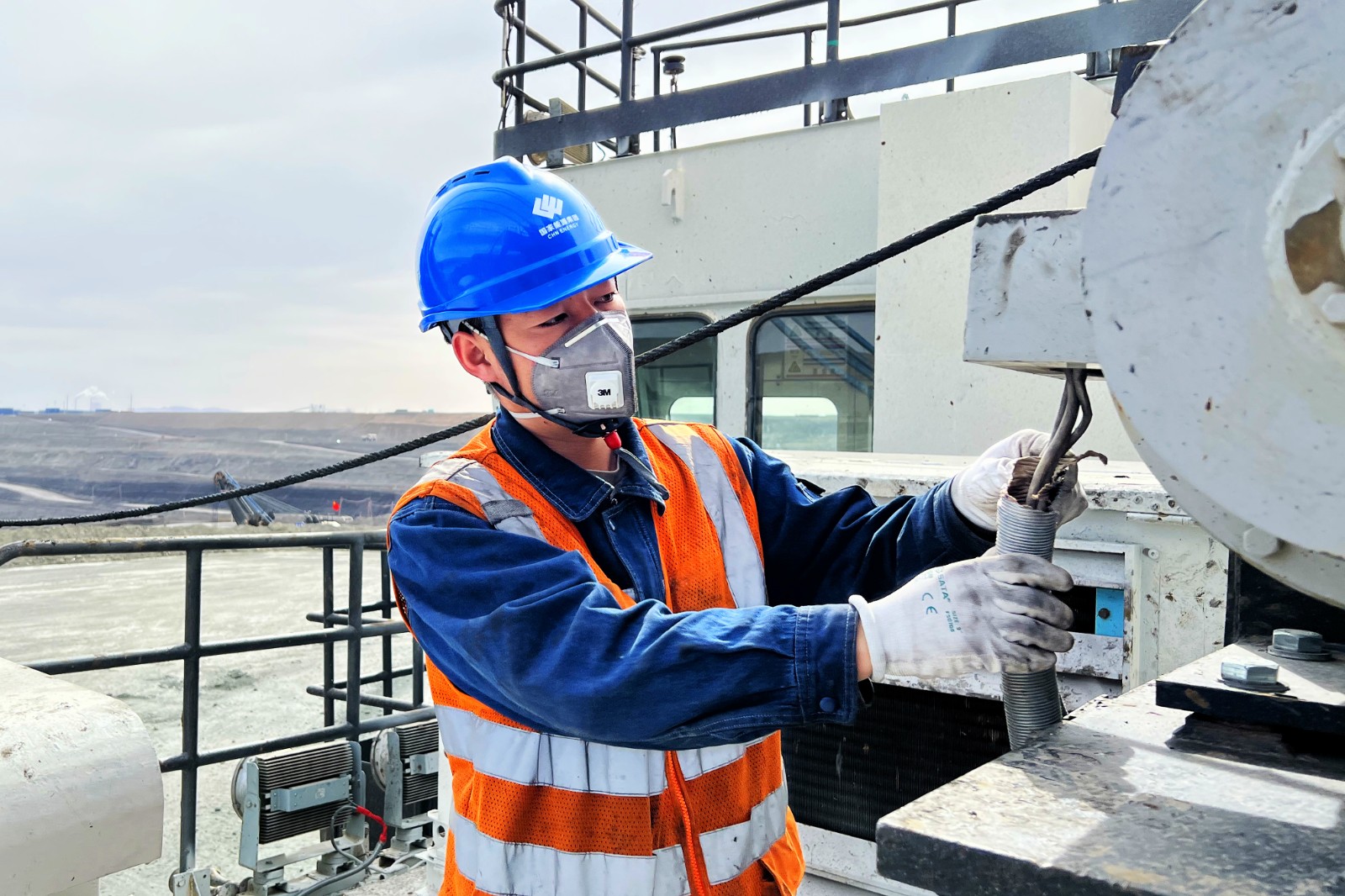 圖為突擊隊(duì)員正在整改WK-35電鏟開斗電機(jī)線束