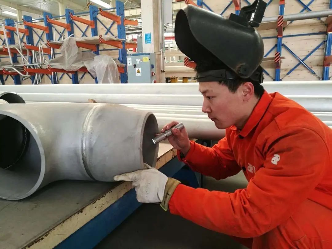 豆存印正在檢查焊縫。但對(duì)豆存印來說,他的焊接合格率早已實(shí)現(xiàn)100%,出于嚴(yán)謹(jǐn)性考慮,焊接完成后他還會(huì)用肉眼再檢查一遍焊縫是否合格,以確保沒有任何細(xì)微的瑕疵遺漏。