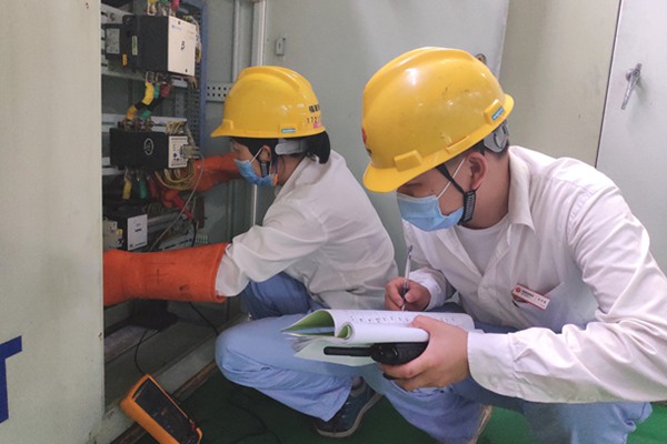圖為運(yùn)行人員正在測量輔機(jī)絕緣