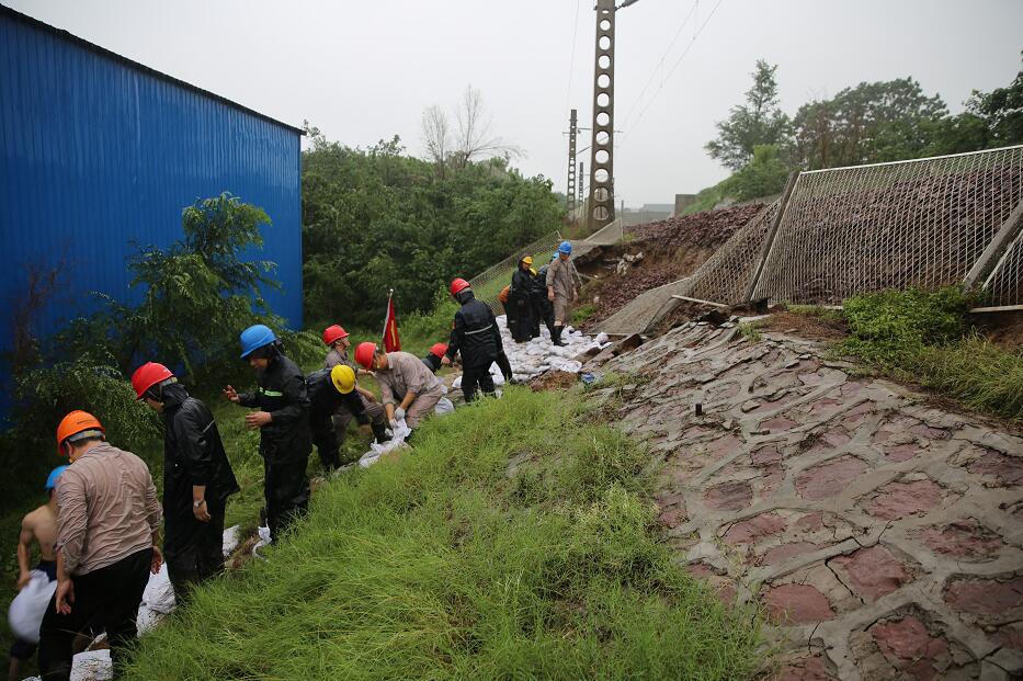 “鐵路專(zhuān)用線(xiàn)路場(chǎng)外區(qū)域索河鐵路大橋北段西側(cè)600米處護(hù)坡出現(xiàn)部分坍塌,我已撤到安全區(qū)域!”20日11時(shí)20分,巡線(xiàn)人員向指揮部報(bào)告。如果鐵路出了問(wèn)題將無(wú)法運(yùn)煤,沒(méi)有煤機(jī)組只能停運(yùn),指揮部的人員聽(tīng)到這個(gè)消息都出了一身冷汗。2臺(tái)轉(zhuǎn)載機(jī)1臺(tái)運(yùn)輸卡車(chē)立即到位,80余名黨員突擊隊(duì)員冒著大雨迅速來(lái)到塌方處,用石子、沙土等加固鐵路護(hù)坡,防止險(xiǎn)情繼續(xù)擴(kuò)大。