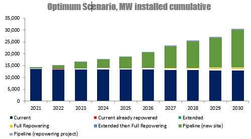 一年前,管道總?cè)萘繛?0GW。從2025年開始,可以看到部署量顯著增加。如果當前管道中的每個項目都繼續(xù)進行,到2030年英國的陸上風電運營容量將達到30GW,是英國目前13.9GW運營能力的兩倍之多。