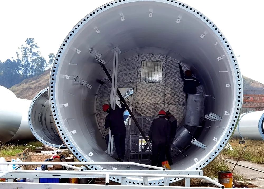 在云南藍(lán)天重工有限公司,工人們正在進(jìn)行風(fēng)力發(fā)電機(jī)塔筒內(nèi)附件安裝。“我們今年新增了一條生產(chǎn)線,并于7月正式投產(chǎn),可滿足單段100噸塔筒生產(chǎn)要求。今年,除了華寧,我們還接到了曲靖、文山等地的訂單。”該公司技術(shù)副總經(jīng)理周鵬翔說,“現(xiàn)在全國風(fēng)電產(chǎn)業(yè)趨勢(shì)向好,帶來了良好的市場(chǎng)前景,也帶來了更大的市場(chǎng)競(jìng)爭(zhēng)。接下來,我們將充分發(fā)揮公司生產(chǎn)規(guī)模大、輻射面積廣的優(yōu)勢(shì),不斷提升產(chǎn)品競(jìng)爭(zhēng)力,逐步擴(kuò)大生產(chǎn)規(guī)模。”