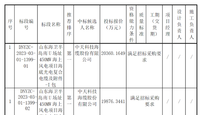 7月14日,國家電投電子商務(wù)平臺發(fā)布《國家電力投資集團有限公司二〇二三年度第十七批集中招標(biāo)(山東分公司海衛(wèi)半島南 U場址450MW海上風(fēng)電項目海底光電復(fù)合電纜及附件)中標(biāo)候選人公示》的公告。