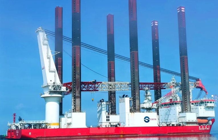 據(jù)了解,“慧海1號”輪是2021年從國外進口的一條具有6條樁腿的自升自航風(fēng)電安裝船,船長138.55米,船寬40.8米,型深10米,配備1000噸主吊機。該平臺配備先進的DP2定位系統(tǒng),可同時搭載3臺風(fēng)電設(shè)備進行作業(yè),具有作業(yè)效率高、工作水深大、抗風(fēng)浪能力強等特點。