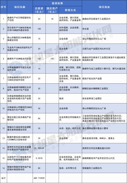 建設(shè)內(nèi)容:項(xiàng)目根據(jù)云南馬龍產(chǎn)業(yè)園區(qū)雞頭村片區(qū)產(chǎn)業(yè)規(guī)劃,依托曲靖市綠色硅光伏產(chǎn)業(yè)發(fā)展基礎(chǔ),規(guī)劃建設(shè)光伏組件生產(chǎn)線、辦公區(qū)、生活區(qū)及配套設(shè)施。項(xiàng)目建成后,可承接曲靖市綠色硅光伏產(chǎn)業(yè)轉(zhuǎn)移,強(qiáng)化曲靖市綠色硅光伏產(chǎn)業(yè)鏈中游制造端,助力曲靖市打造綠色硅光伏全產(chǎn)業(yè)鏈,釋放曲靖光伏產(chǎn)業(yè)新動(dòng)能。吸引了晶澳、陽(yáng)光、德方納米等一批行業(yè)龍頭企業(yè)落戶曲靖,投資建設(shè)了系列項(xiàng)目。其中,晶澳投資173億元連續(xù)布局建設(shè)4期項(xiàng)目、陽(yáng)光能源投資39.5億元連續(xù)布局建設(shè)3期項(xiàng)目、德方納米投資300億元連續(xù)布局建設(shè)13期項(xiàng)目,有力推動(dòng)了綠色硅光伏、新能源電池產(chǎn)業(yè)全產(chǎn)業(yè)鏈集群發(fā)展。項(xiàng)目建成投產(chǎn)后,產(chǎn)能為2GW/年,按組件價(jià)格1.7元/瓦,可實(shí)現(xiàn)年?duì)I業(yè)額34億元,除去投資成本及設(shè)備折舊成本,一年內(nèi)可實(shí)現(xiàn)項(xiàng)目回本,預(yù)計(jì)每年可實(shí)現(xiàn)利稅5億元左右。