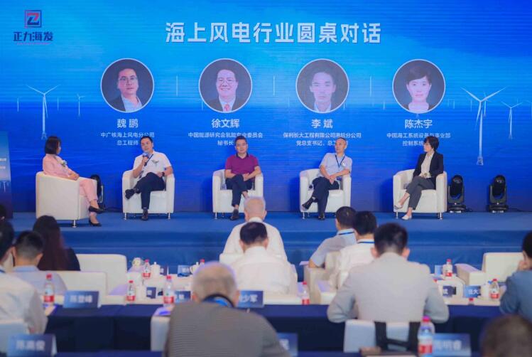 主旨演講后,由正力海發(fā)公司總裁高玲總主持,中廣核工程公司海上風(fēng)電公司總工程師魏鵬、國(guó)能源研究會(huì)氫能專業(yè)委員會(huì)秘書長(zhǎng)徐文輝、中保利長(zhǎng)大工程有限公司港航分公司黨總支書記、總工程師李斌、中國(guó)海工系統(tǒng)設(shè)備與事業(yè)部控制系統(tǒng)專家陳杰宇4位嘉賓的圓桌對(duì)話,圍繞中國(guó)海風(fēng)拓展國(guó)際市場(chǎng)的機(jī)遇和挑戰(zhàn)、海上風(fēng)電制氫技術(shù)發(fā)展及未來展望、深水風(fēng)電支腿船如何助力浮式風(fēng)機(jī)建設(shè)、海工裝備國(guó)產(chǎn)化的思考四個(gè)方面進(jìn)行深入探討,四位嘉賓專業(yè)見解和經(jīng)驗(yàn),展現(xiàn)了海風(fēng)市場(chǎng)、海上風(fēng)電、海工建設(shè)、海工裝備在未來的發(fā)展中具有廣闊的前景和未來,海洋能源、海洋工程大有可為。