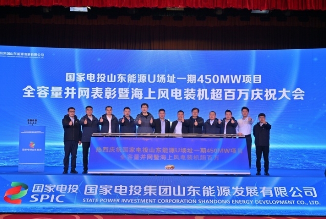 11月28日,國家電投山東能源U1場址一期450兆瓦海上風(fēng)電項(xiàng)目全容量并網(wǎng)表彰暨海上風(fēng)電裝機(jī)超百萬慶祝大會(huì)舉行。新黃河記者獲悉,國家電投山東能源有限公司“百萬千瓦級(jí)海上風(fēng)電基地”建成,這是國家電投在魯首個(gè)百萬千瓦級(jí)海上風(fēng)電基地。