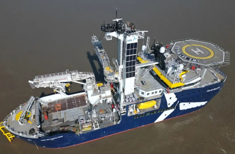 “IWS SKY WALKER”號(hào)總長(zhǎng)90米,型寬19.6米,設(shè)計(jì)航速13節(jié),可為120人提供轉(zhuǎn)運(yùn)和30天以上的海上生活及作業(yè)支持,采用柴電電力推進(jìn)和直流母排配電系統(tǒng),靠泊及操縱性能優(yōu)異,可實(shí)現(xiàn)風(fēng)場(chǎng)設(shè)備及備件的高效存儲(chǔ)和運(yùn)輸。項(xiàng)目配備直升機(jī)甲板、工作艇(子船)及艉部CTV接駁平臺(tái),人員運(yùn)輸及調(diào)配效率極高。同時(shí)還配備DP2動(dòng)力定位系統(tǒng)及3D波浪補(bǔ)償傳送舷梯及3D波浪補(bǔ)償主吊,可實(shí)現(xiàn)嚴(yán)苛海況下的人員轉(zhuǎn)運(yùn)及風(fēng)場(chǎng)維護(hù)作業(yè),安全性能及工作效率遠(yuǎn)高于同類船舶。