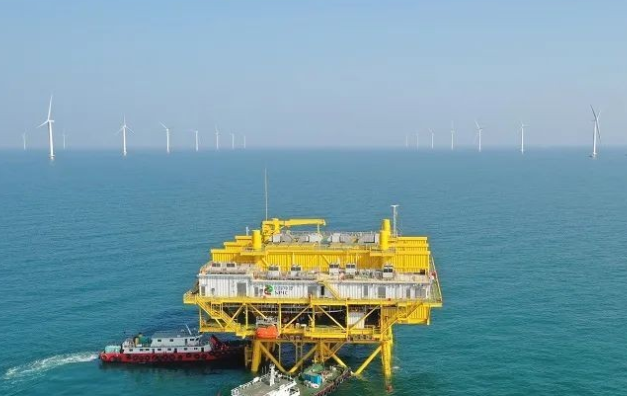 與乳山陸上集控中心遙遙相望的,是配套建設的一座220千伏、100萬千瓦海上升壓站。作為國內外單體容量最大的模塊化預裝式升壓站,適合海上風電大容量機組的66千伏集電系統(tǒng)在半島南U場址海上風電場全面應用。