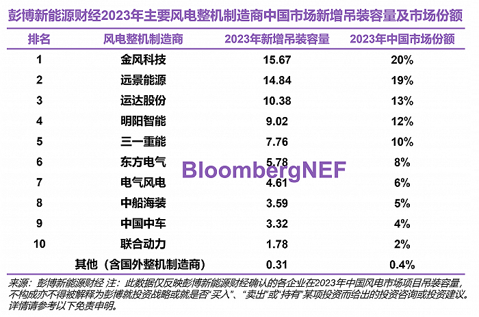2月19日,彭博新能源財(cái)經(jīng)發(fā)布2023年中國風(fēng)電整機(jī)制造商新增吊裝容量排名。
