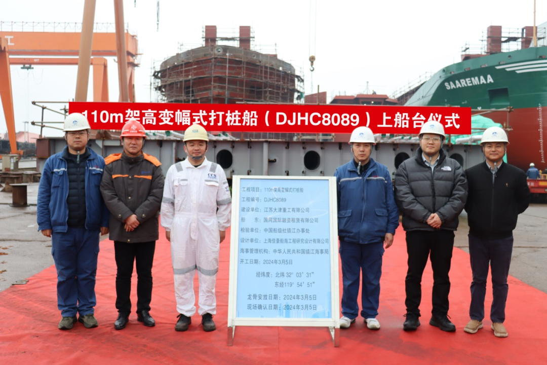近日,天海防務(wù)全資子公司江蘇大津重工有限公司為中交三航局第四工程有限公司建造的“110m架高變幅式打樁船(DJHC8089)”項(xiàng)目在室外船臺(tái)順利上船臺(tái)。
