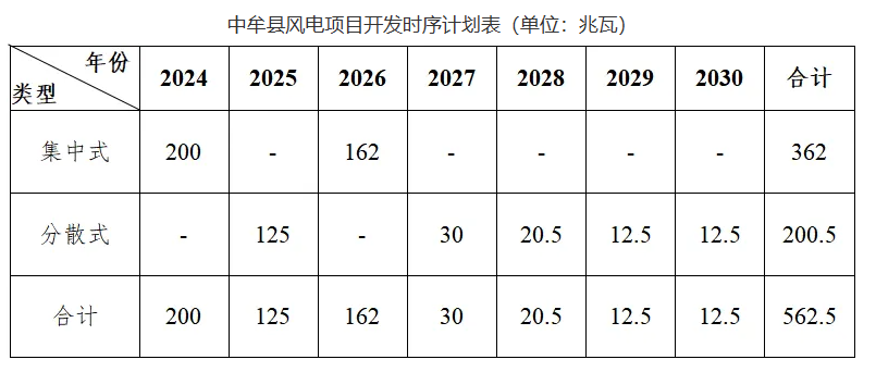 中牟縣風(fēng)電項目開發(fā)時序計劃表(單位:兆瓦)