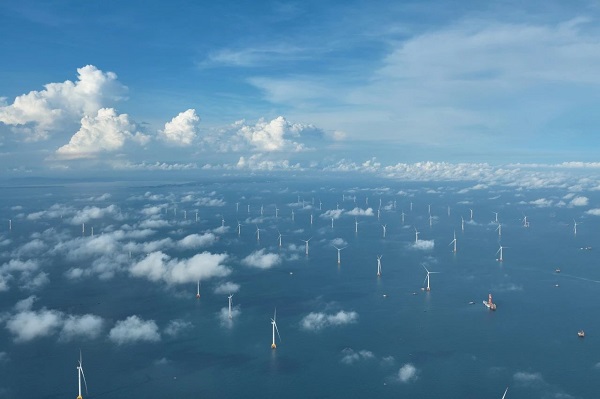 風(fēng)從海上來。北部灣海上風(fēng)能資源豐富,開發(fā)潛力巨大,是近年來我國海上風(fēng)電開發(fā)的熱土之一。作為我國西南地區(qū)首個海上風(fēng)電項目,防城港海上風(fēng)電示范項目是北部灣千萬千瓦海上風(fēng)電基地的開篇之作,項目包括A和F兩個場址,規(guī)劃裝機容量180萬千瓦,總投資約245億元。其中,A場址規(guī)劃建設(shè)83臺單機容量8.5兆瓦及以上風(fēng)電機組,近日已完成79臺風(fēng)機吊裝,其中65臺已并網(wǎng)發(fā)電,累計發(fā)電量突破5億千瓦時,相當(dāng)于減排二氧化碳45萬噸,成功申領(lǐng)廣西首批海上風(fēng)電綠色電力證書,項目經(jīng)濟(jì)效益和生態(tài)效益顯著。