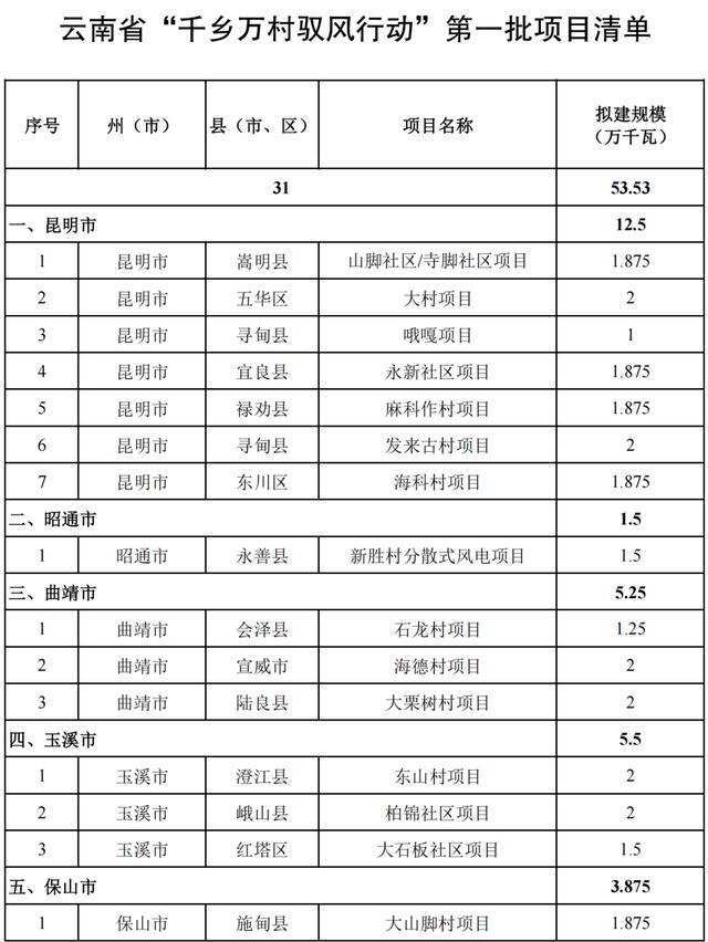 為持續(xù)打造綠色能源強省、大力發(fā)展新能源、助力鄉(xiāng)村振興,云南近日發(fā)布《“千鄉(xiāng)萬村馭風行動”第一批項目開發(fā)建設(shè)方案》(以下簡稱《方案》),將開發(fā)建設(shè)第一批共31個風電項目,裝機容量53.53萬千瓦。