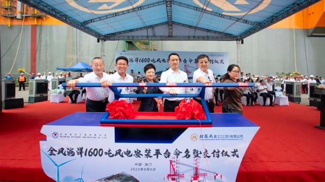 8月8日,新一代深遠(yuǎn)海1600噸風(fēng)電安裝平臺(tái)“中天31”命名暨交付儀式在江蘇南通舉行。南通市委副書(shū)記、代市長(zhǎng)張彤,陽(yáng)江市委副書(shū)記、市長(zhǎng)余金富,招商局工業(yè)集團(tuán)黨委副書(shū)記、副總經(jīng)理吳四川,金風(fēng)科技集團(tuán)董事長(zhǎng)武鋼,中天科技集團(tuán)董事長(zhǎng)薛濟(jì)萍,以及三峽集團(tuán)、國(guó)家電投集團(tuán)、中廣核新能源公司等客戶(hù)代表出席儀式。
