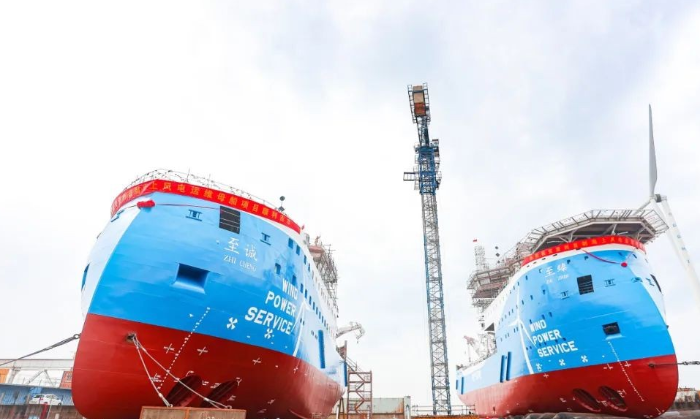 本次風電運維母船順利下水,正式進入碼頭系泊舾裝。兩艘運維母船投產后,將專門應用于離岸40公里以外的大型風場,能在很大程度上緩解目前中國主流海上交通船窗口期短、無法接續(xù)作業(yè)、往返次數(shù)多、效率低、惡劣海況適用性差等痛點,為深遠海項目運維提供強有力的支撐,是目前全球范圍內解決深遠海運維的最佳方案之一。