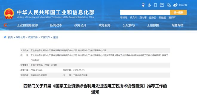 四部門關(guān)于開展《國家工業(yè)資源綜合利用先進(jìn)適用工藝技術(shù)設(shè)備目錄》推薦工作的通知