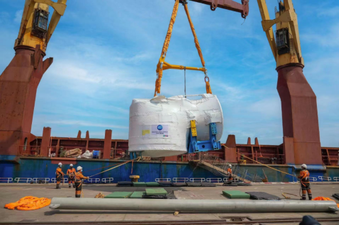 明陽風(fēng)機(jī)主機(jī)在天津港裝船 通訊員供圖