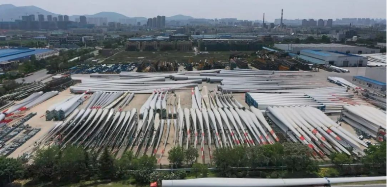 江蘇連云港大浦工業(yè)園區(qū)內(nèi),一支支百米長(zhǎng)的“龐然大物”整齊碼放,等待奔赴深藍(lán)。中復(fù)連眾復(fù)合材料集團(tuán)有限公司生產(chǎn)經(jīng)理薄杉杉指著它們說(shuō):“我們現(xiàn)在生產(chǎn)一只葉片只需要十來(lái)天的時(shí)間,可在十幾年前,我們連一支大風(fēng)機(jī)機(jī)組葉片都造不出來(lái),全得指望進(jìn)口。”