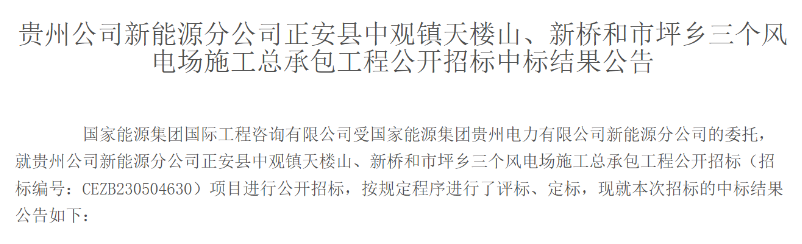 公告顯示,中國(guó)電建集團(tuán)貴州工程有限公司成功中標(biāo)該項(xiàng)目,中標(biāo)價(jià)格為29242.222800萬(wàn)元。