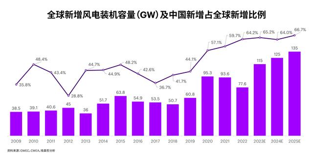 未來三年,全球新增風電裝機容量將保持15%以上的復(fù)合增長率,突破375GW,中國風電新增裝機容量占全球比重預(yù)計將保持在50%以上,持續(xù)引領(lǐng)全球風電增長。