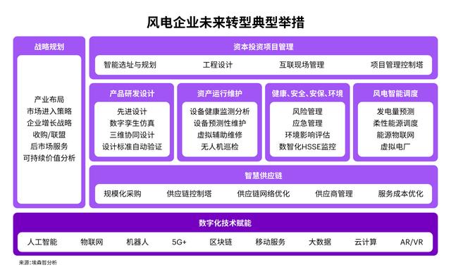 人工智能、物聯(lián)網(wǎng)、AR/VR、5G等數(shù)字技術(shù)快速發(fā)展,成為了風電企業(yè)轉(zhuǎn)型的強大助力,通過將數(shù)字化、智能化解決方案嵌入核心業(yè)務(wù)及全產(chǎn)業(yè)鏈,更有效支撐企業(yè)運營管理優(yōu)化。