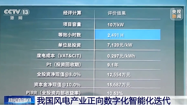 總臺央視記者 古峻嶺:正是通過這種空天地面的多種數字化、智能化的科技手段,使得風力資源可以得到最大限度的優(yōu)化利用。高度智能化的運維系統(tǒng),不光可以實時監(jiān)測到整個風電場的運行數據,就連收益情況也能給你算得明明白白。